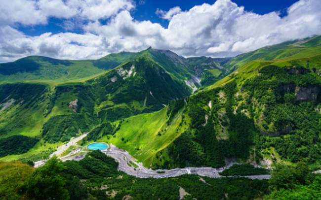 You will meet the Driver and Guide in your hotel lobby, the route will take over the Georgian Military Highway up North, towards the border with Russia. You will reach Jhinvali Water reservoir created during the soviet era. You will spend 20 minutes there and promptly continuing your way to Ananuri complex, a former residence of Argveti Dukes. You will reach Ananuri complex. The complex features churches and towers dating back to the 16-17th centuries, beautifully overlooking the Jhinvali reservoir. Because of local uprising and clashes Ananuri was controlled by different Dukes. We will drive over the Cross Pass and make a short stop at the Soviet-era People Friendship mountain view point overlooking a deep gorge of Caucasus mountain range. After arriving to Kazbegi (Stepantsminda) we will change our vehicle to a four-wheel drive car to reach Gergeti Holy Trinity Church located on altitude of 2170 meters, and enjoy breathtaking views of Mt Kazbegi. Transfer to Tbilisi.